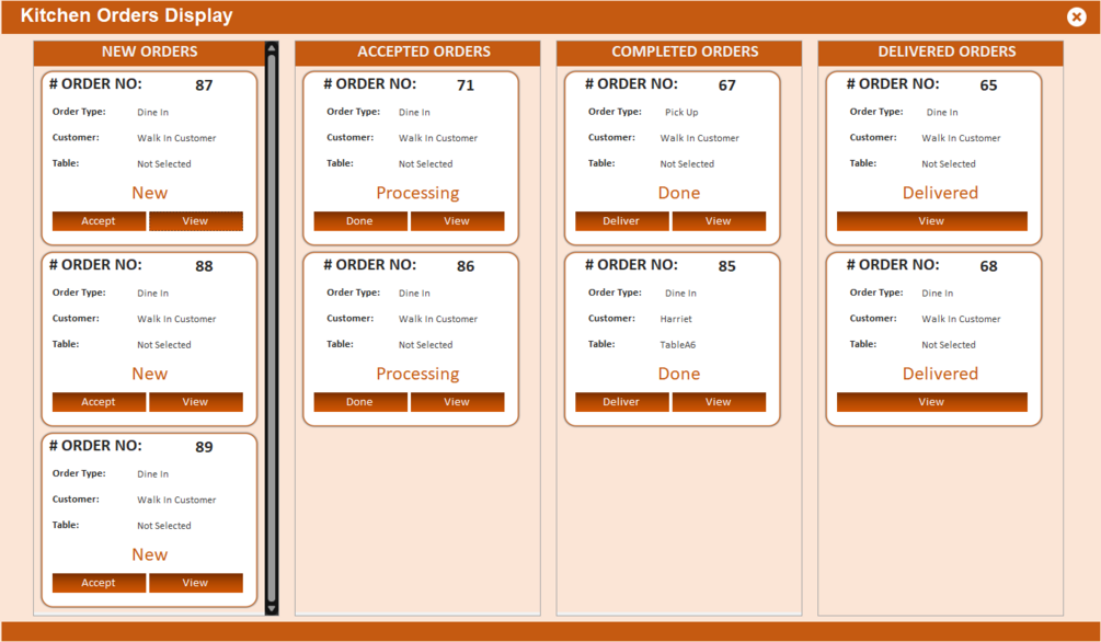 - Kitchen Display: It has a kitchen display system