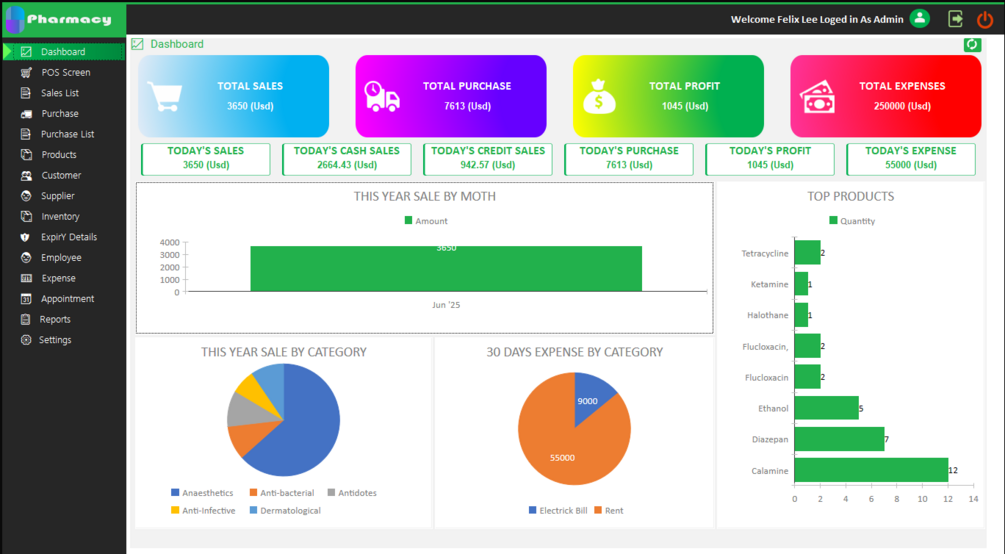 This robust and user-friendly Pharmacy Management System, built using Microsoft Access and VBA, comes with full source code, making it fully customizable to suit your business needs. It is designed to streamline and simplify the process of tracking sales, purchases, and inventory in real time.